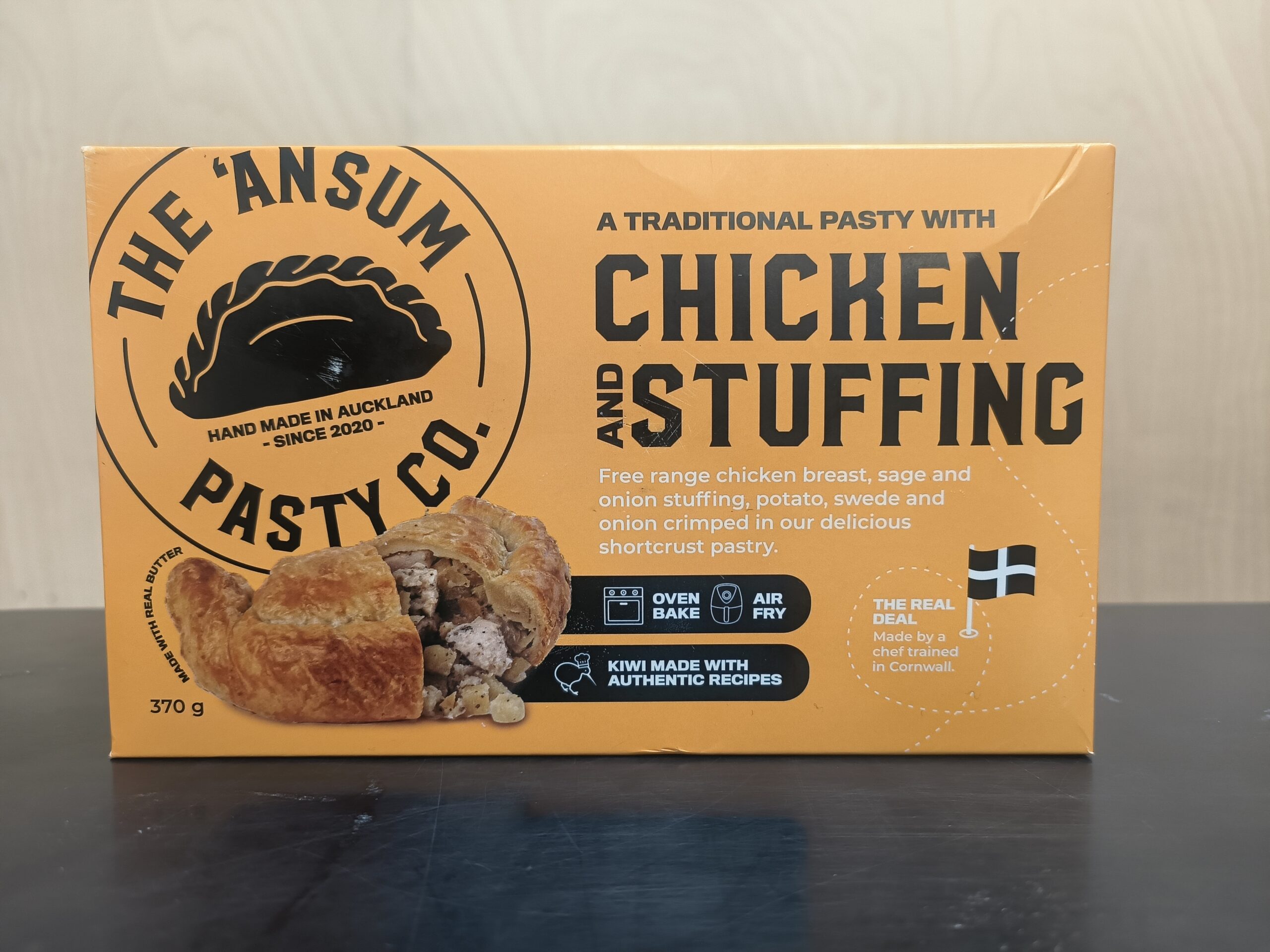 The Ansum Pasty Co – Roast Chicken and Stuffing: Free-range chicken breast with a classic sage and onion stuffing, agria potato, and swede.