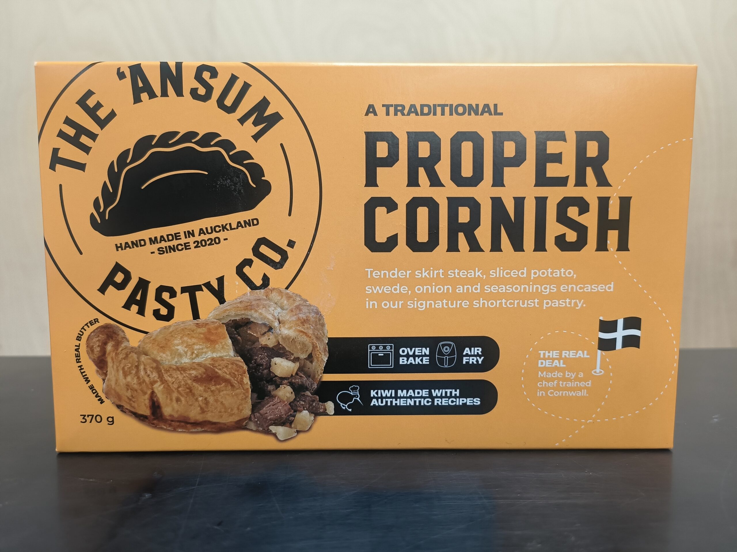 The Ansum Pasty Co – Proper Cornish: Our classic recipe with skirt steak, sliced potato, swede, onion, and black pepper.