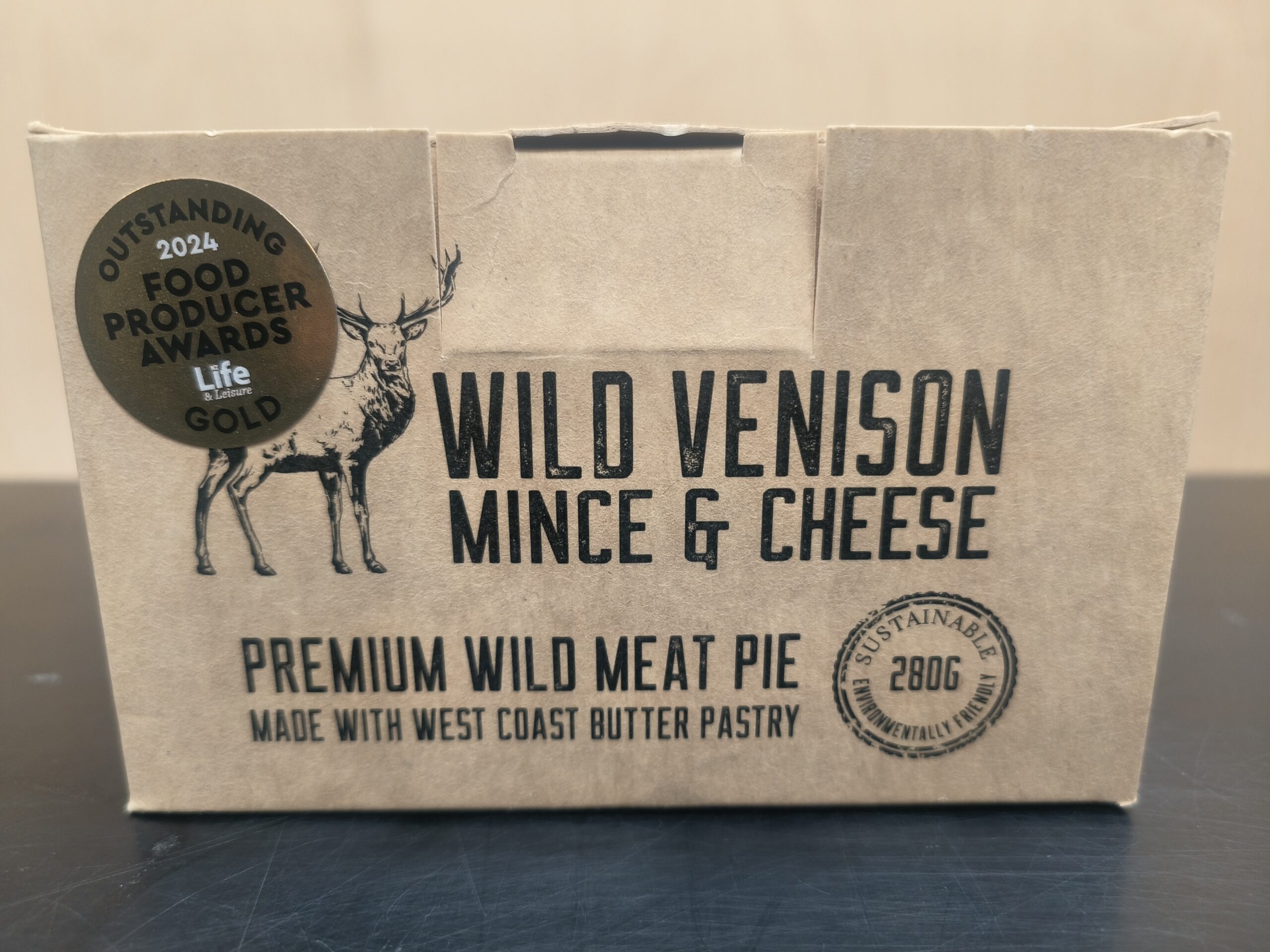 The Wild West Coast Pie Co create their primo wild venison mince and cheese pie, by slow cooking the wild venison mince in a rich flavoursome stew doused in a Southern dark ale and laden with fresh herbs and vegetables. Then they pack it in their signature buttery pastry made with traditionally churned West Coast butter and finish with a generous slice of Mainland cheese.
